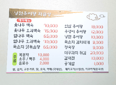 저희는 추어탕 집이니까 가게 이름처럼 가장 기본 메뉴인 낭천추어탕을 먹어보기로 했습니다.