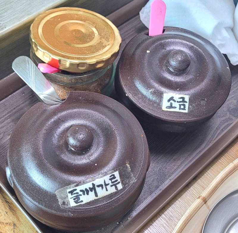 옆에 있는 소금과 들깻가루, 산초가루 같은 것으로 개인 입맛에 맞게 간을 맞추세요.