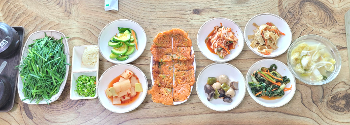 부추, 마늘, 고추 빼고 반찬은 8가지가 나왔네요.